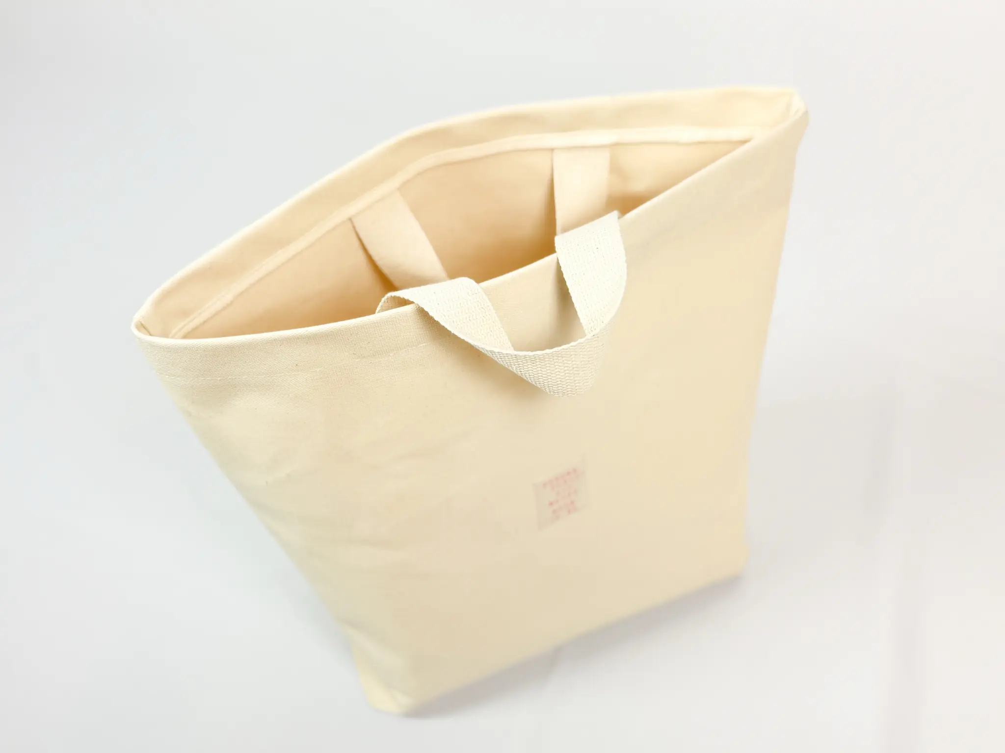 A sturdy everyday canvas tote (21L) for work, school, and walks. Made from 100% cotton canvas, unlined, with a flat base and two 36 cm handles. Delivery in the Netherlands within 1 week.